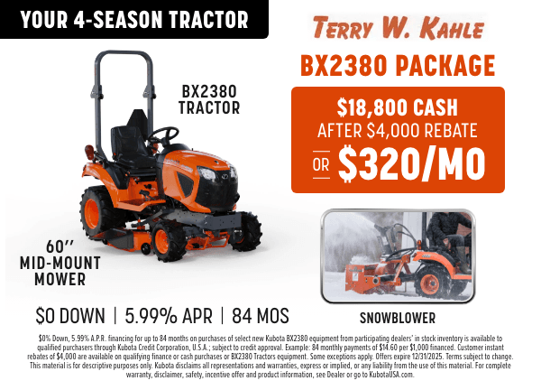 TAKE ADVANTAGE OF OUR EXCLUSIVE OFFERS ON SELECT KUBOTA PRODUCTS.
